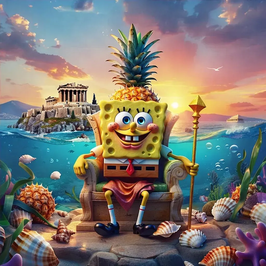 Generate AI-powered visuals of SpongeBob SquarePants humorously ruling Greece with vivago.ai. Create meme-worthy, imaginative images blending cartoon charm and historical themes using advanced AI tools. Perfect for social media, satire, or creative storytelling. Transform text prompts into viral-worthy digital art effortlessly.