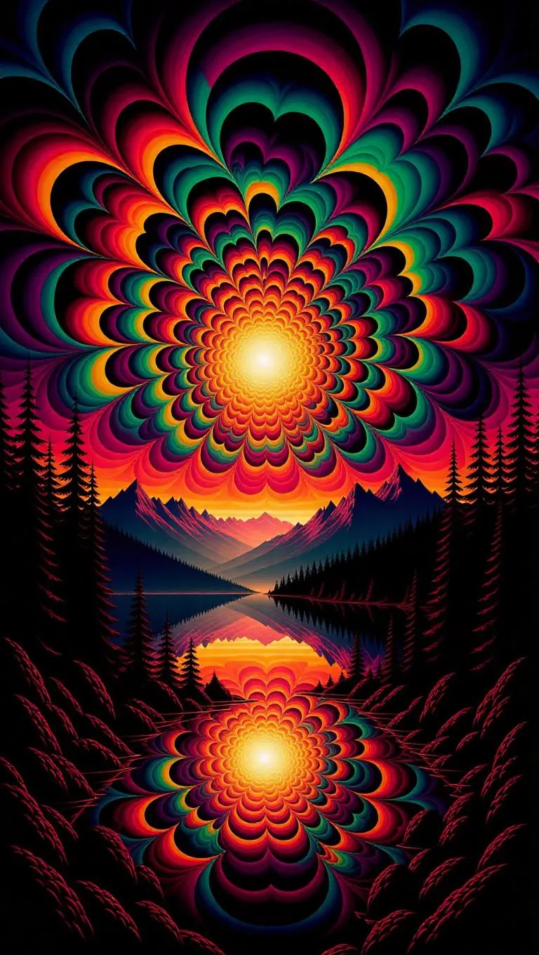 Create surreal psychedelic art with AI-powered Entoptic phenomena effects. Transform desolation soundscapes into mind-bending visuals blending surrealism, entoptic patterns, and vibrant abstraction for immersive, otherworldly creative projects using advanced AI tools.