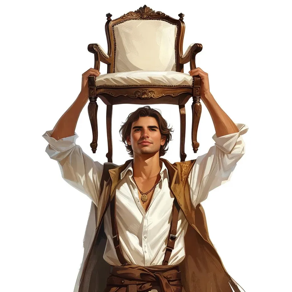 Create a captivating fantasy scene with AI: a hand-drawn warrior lifting a majestic chair skyward, blending mythical strength and whimsical artistry. Perfect for storytelling, games, or surreal visuals. Vivago.ai transforms prompts into striking, detailed illustrations with a clean white background for seamless use in creative projects. Elevate your fantasy art with AI-powered precision and imaginative flair.