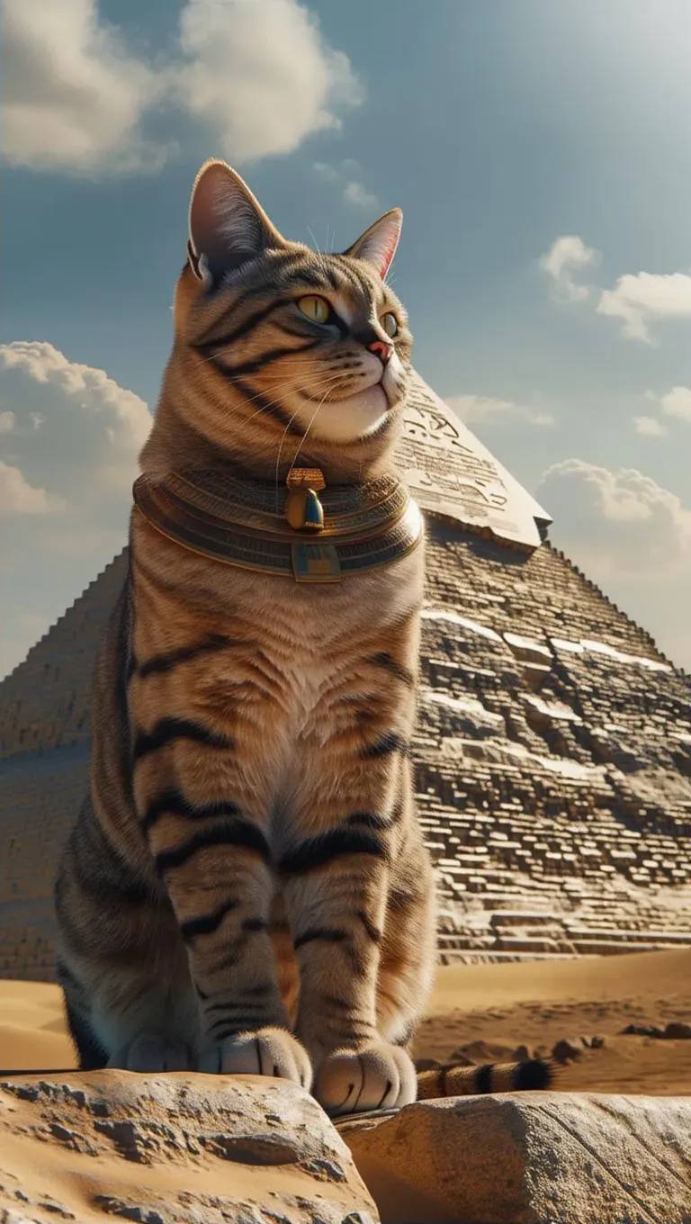 Generate a cinematic scene of a colossal cat perched on ancient Egypt pyramids with AI image generator. Ultra-realistic details, high-resolution visuals, and professional-grade editing tools bring your creative vision to life. Transform text prompts into stunning, trending AI effects instantly. Craft jaw-dropping visuals effortlessly.