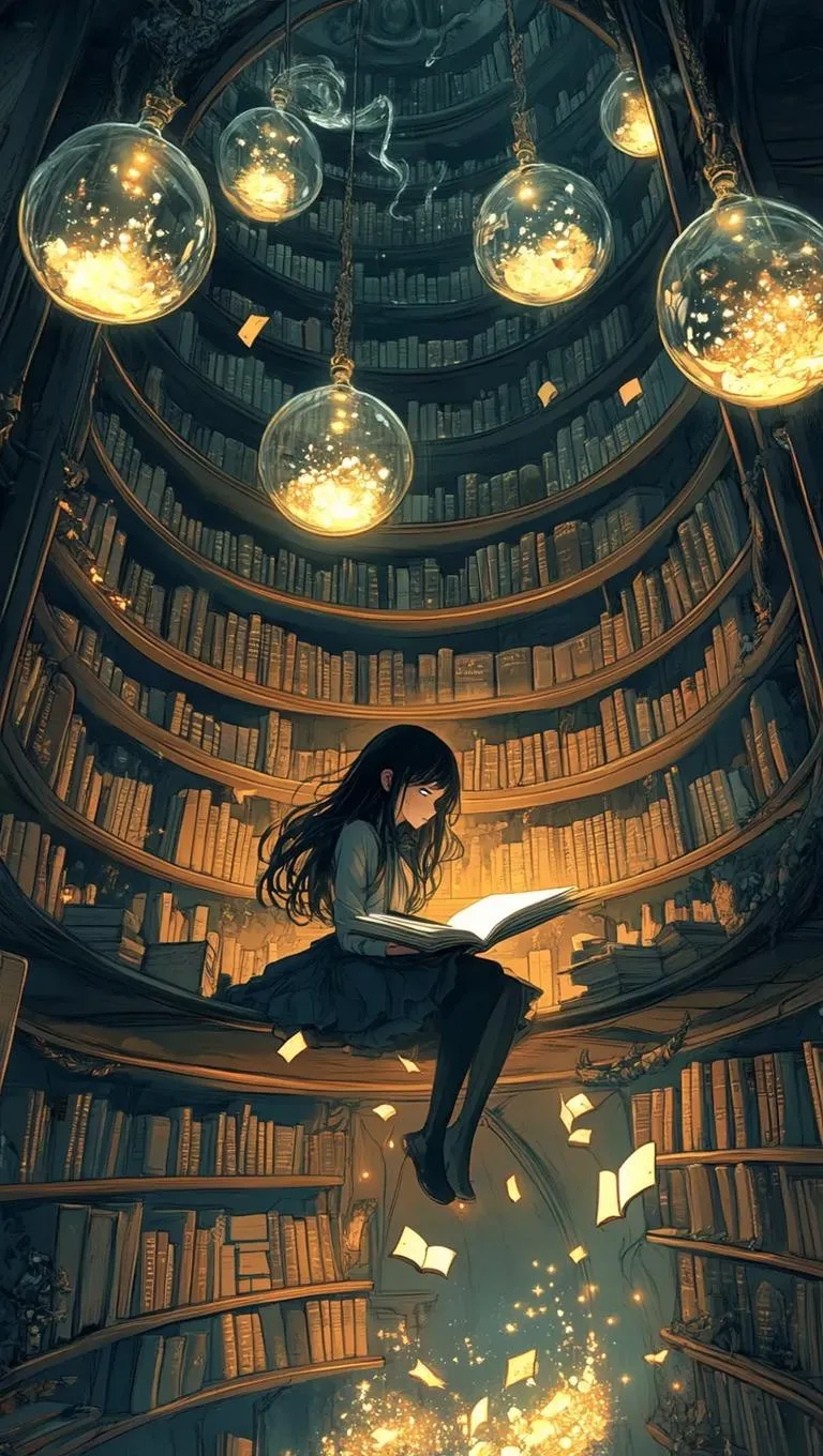 Discover a cinematic anime scene where a girl reads a self-writing journal in a candlelit tower with Escher-like geometry. Floating books, whispering forgotten tongues, and memory-filled glass orbs surround her. Rendered in luminous watercolor artistry, ink-soaked parchment tones, and ethereal light, this mystical moment blends reverent stillness with magical motion. Perfect for anime-inspired, cinematic, and watercolor visual storytelling.