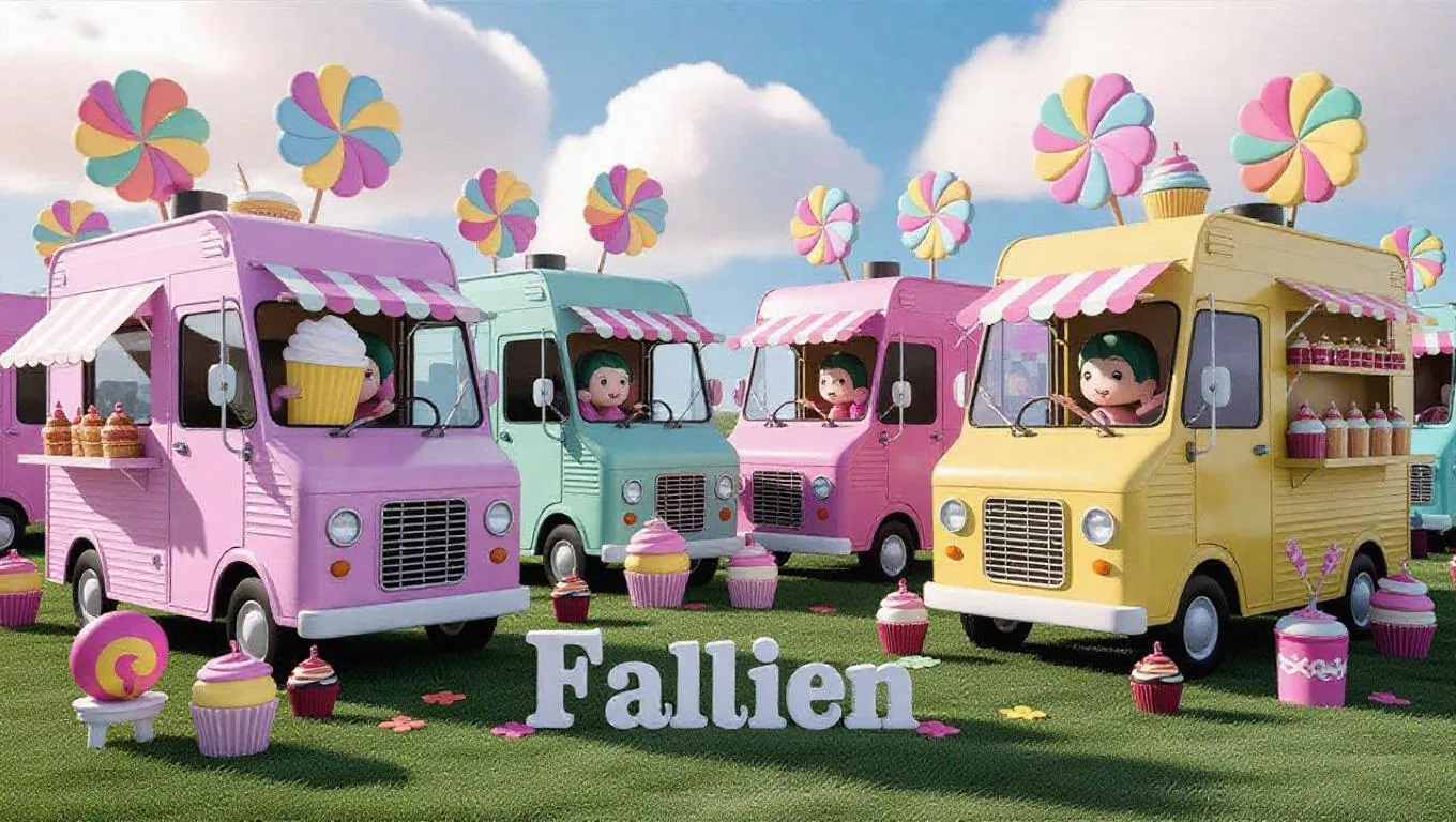 Create a whimsical 3D cartoon scene with vivago.ai's AI tools: pastel food trucks, retro trailers, and chibi-style characters serving glowing drinks and desserts. Cel-shaded textures, candy-colored shadows, and playful proportions highlight this vibrant world, enhanced by bloom effects and floating steam swirls. Perfect for eye-catching, AI-generated visuals with a retro-fantasy charm.