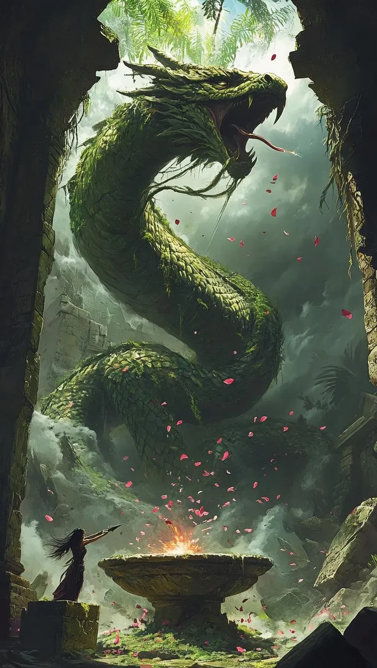 Generate epic AI anime art with dynamic watercolor effects. Create mythic serpent-dragon battles in storm-bound jungles—cinematic fantasy scenes featuring crumbling ruins, magic surges, and heroic clashes. Transform text into professional-grade visuals with vivago.ai's AI tools for cinematic-scale destruction and dramatic, watercolor-styled anime storytelling.