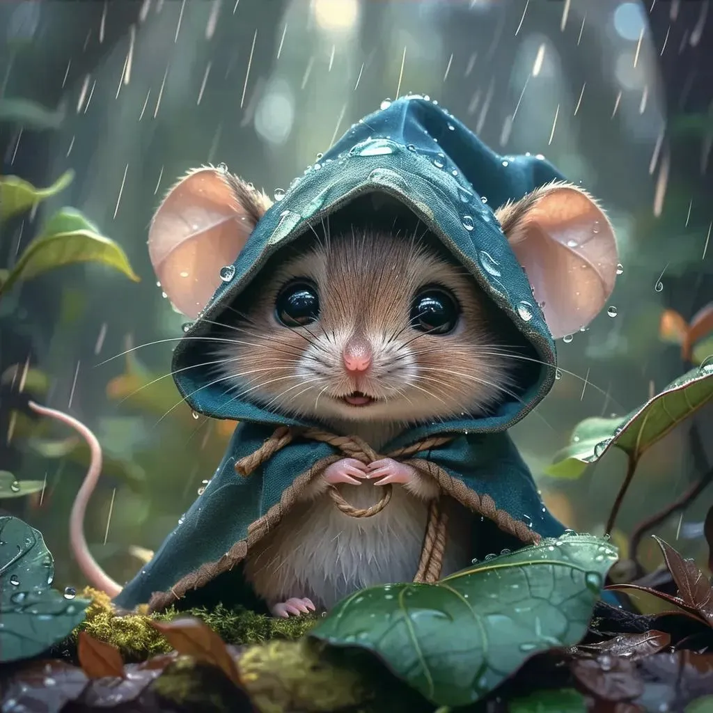 Capture serene forest beauty with this AI-generated photo-realistic mouse in a medieval cloak under a leafy shelter. Detailed fur, vibrant rain-kissed greenery, soft sunlight, and reflective puddles evoke innocence and wonder. Perfect for storytelling visuals—explore vivago.ai’s AI image tools to craft lifelike scenes blending fantasy and nature.