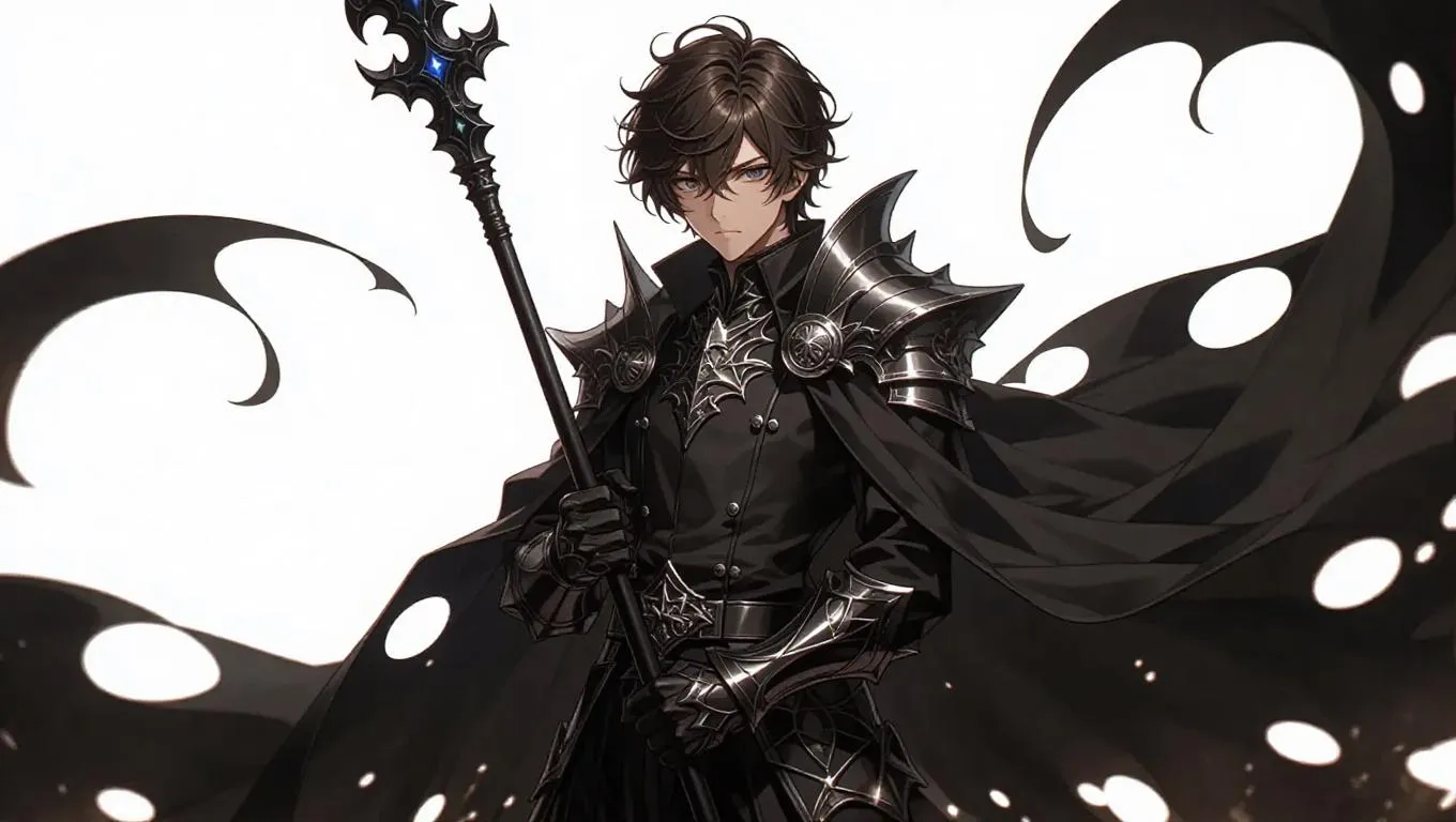 Generate a striking anime-style fantasy character with AI: evil teen wizard in medieval dragon-themed attire, wielding a shadow-cloaked staff amid swirling dark aura. Vivago.ai transforms detailed prompts into vivid AI art with precision shadow effects and professional editing tools for dynamic anime-inspired visuals.