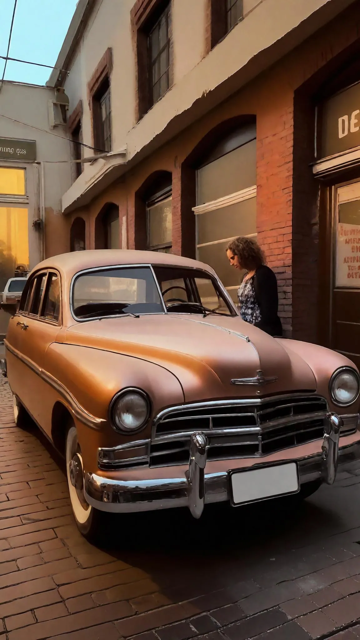 Generate a nostalgic 1980s urban scene with AI: classic car parked on brick-lined streets, retro storefronts, and pedestrians in vintage attire. Vivago.ai crafts cinematic visuals with soft evening lighting and Aqua effects for professional-grade retro ambiance. Transform text prompts into AI-generated images blending nostalgic charm and creative precision.
