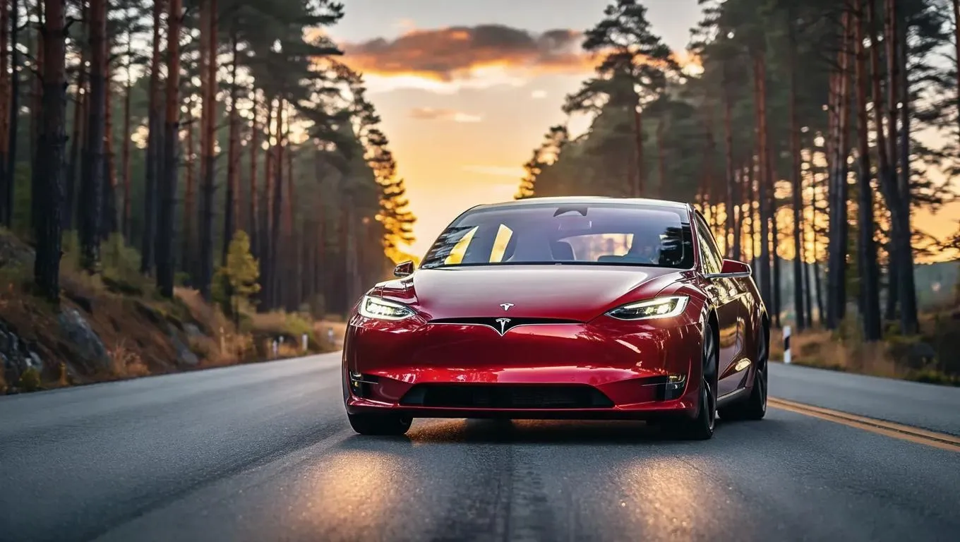 Discover AI-generated visuals of a sleek red electric car for young adults, cruising at dusk. Featuring a sporty five-door design, eco-friendly innovation, and scenic roadside trees. Perfect for dynamic, sustainable automotive imagery with Vivago.ai's AI-powered creative tools.
