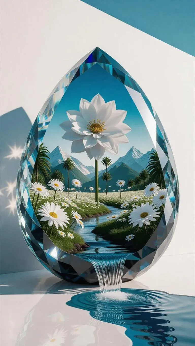 Explore AI-generated hyper-realistic crystal landscapes with vivago.ai. Transform prompts into vivid Fauvism-inspired psychedelic art: tropical forests, glowing flora, and flowing streams encased in surreal crystal structures. White backgrounds highlight vibrant colors, shadows, and dynamic compositions. Perfect for surreal nature visuals, professional editing, and AI-powered creativity. Unleash vibrant, dreamlike imagery with cutting-edge AI effects.