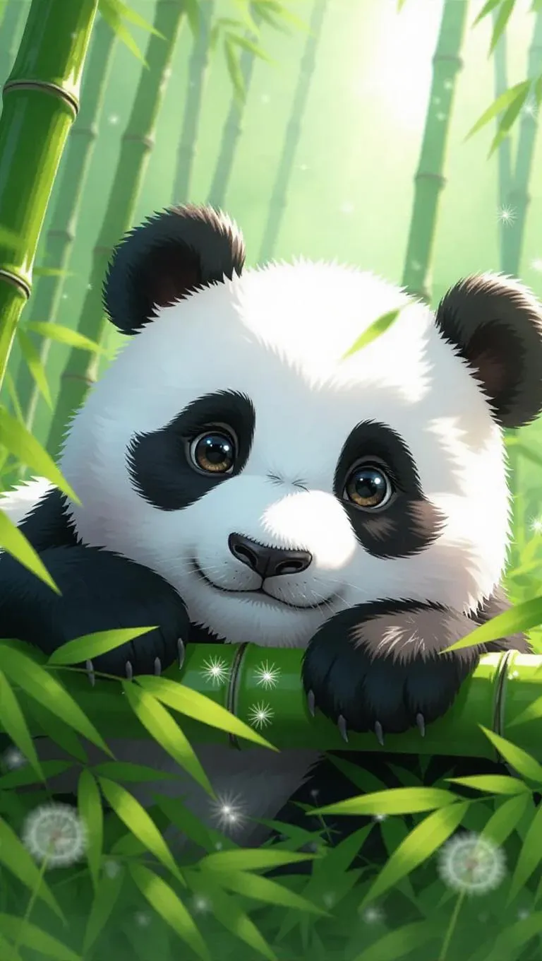 Create stunning 4K anime-style panda wallpapers with vivid details. Featuring a cute panda in a lush bamboo forest, soft fur, shimmering eyes, and floating dandelion seeds. Bright, harmonious colors and dreamy light effects for a fresh, professional-grade aesthetic. Perfect HD backdrop for anime lovers.