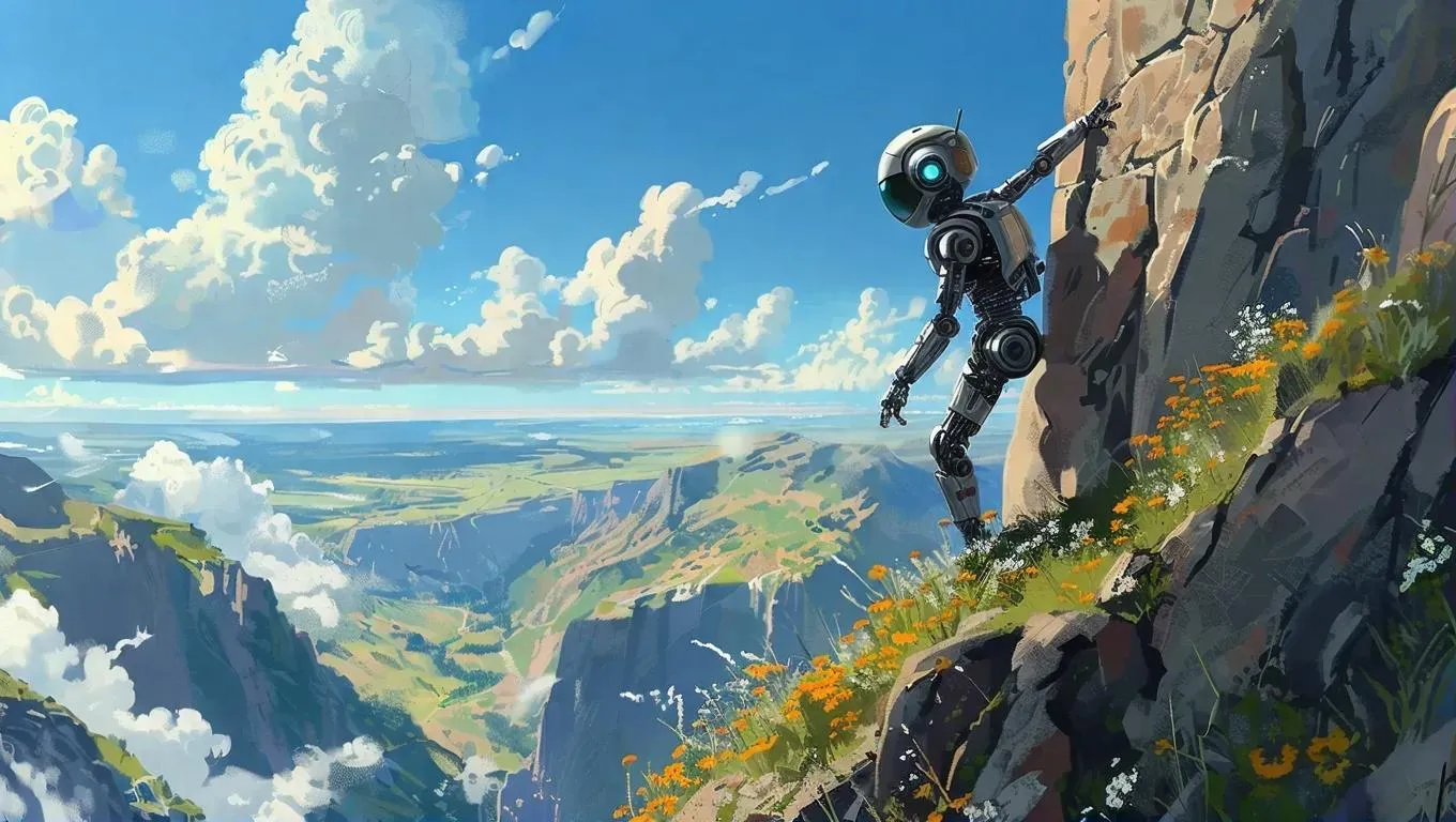 Create stunning AI-generated visuals of an android boy clinging to a mountain cliff edge with our text-to-image AI tool. Transform creative prompts into dynamic scenes with precision AI effects. Explore professional-grade editing for lifelike, high-quality imagery tailored for your storytelling or design projects.