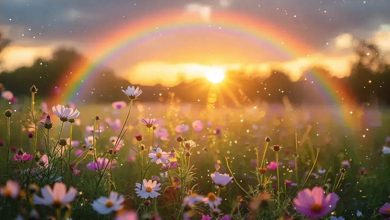 Experience AI-crafted serenity with a dawn garden scene: soft pink-orange skies, lush meadows, blooming flowers under golden sunlight. Sparkling rainbows and ambient glimmers enhance this dreamy animation. Perfect for creators seeking vibrant, ethereal visuals. Elevate projects with Vivago.ai's professional AI effects for mesmerizing, nature-inspired content.