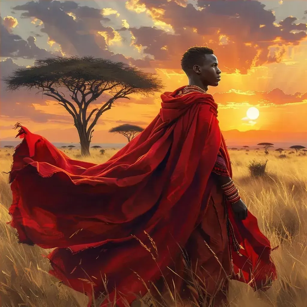 Create striking AI visuals of a tall African teen in a vibrant red cloak with vivago.ai. Transform creative prompts into high-quality, culturally rich imagery. Perfect for diverse storytelling, art projects, or social content. Boost engagement with lifelike details and dynamic AI effects.