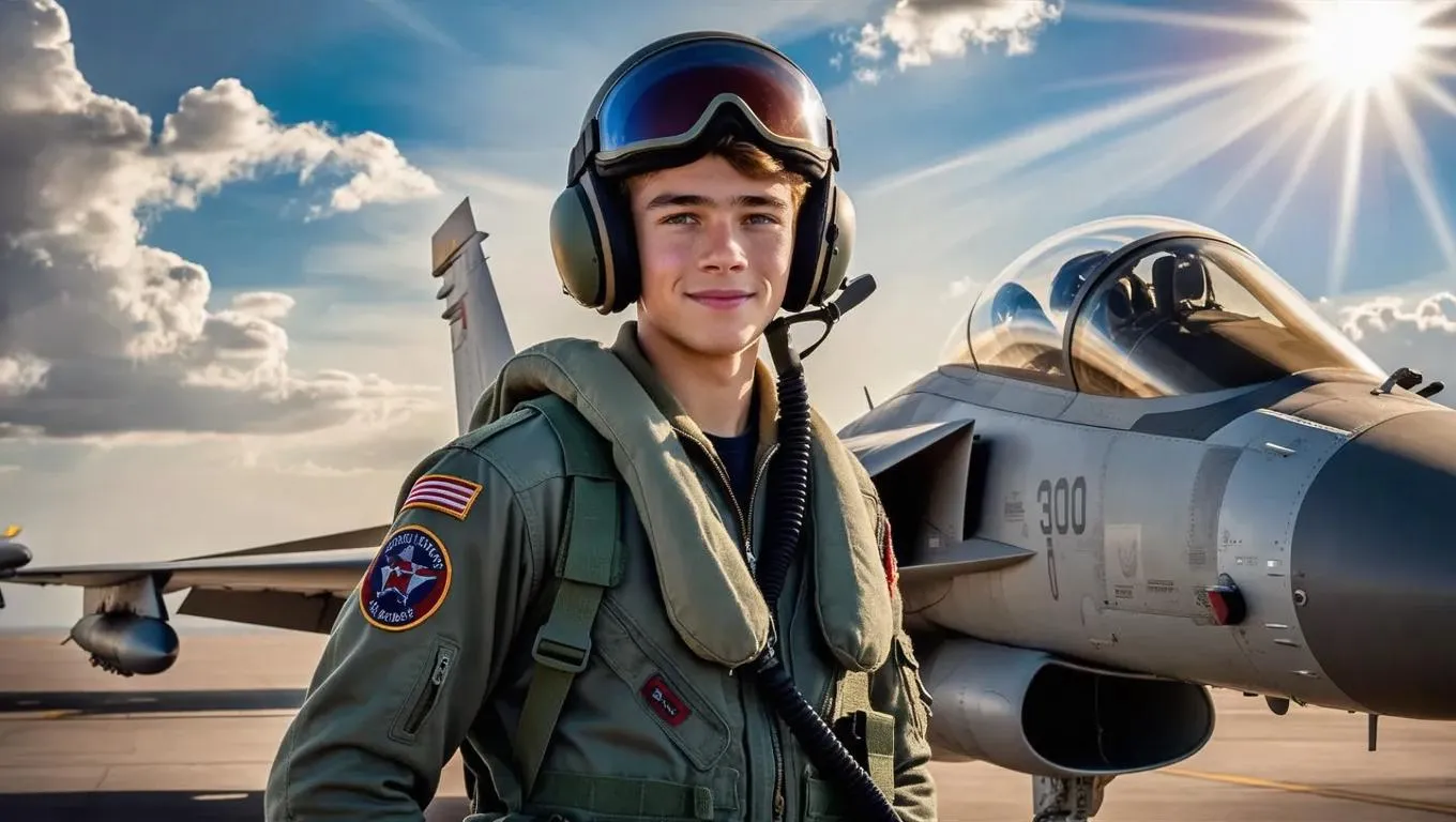 AI-generated fighter pilot imagery captures a poised aviator in a detailed flight suit beside a sleek fighter jet on a sunlit airfield. Professional visuals highlight aviation readiness with reflective helmets, rugged gear, and distant aircraft under a vibrant sky. Perfect for dynamic marketing, aviation content, or military-themed projects. Create striking, lifelike scenes with vivago.ai's AI image tools.