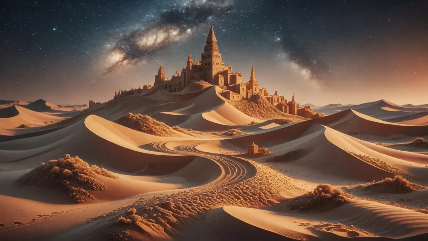 Generate cinematic Hollywood-style 3D sand art with vivago.ai. Transform prompts into realistic, blockbuster-worthy visuals using AI-powered sand painting effects and professional editing tools for dynamic depth, texture, and cinematic mastery.