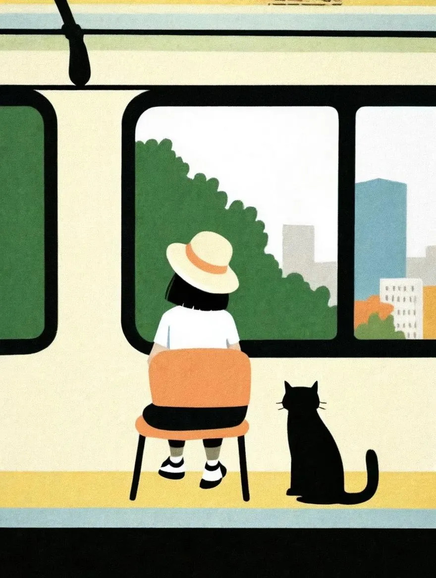 Create charming subway scenes with AI! Generate vibrant Ligne Claire-style cartoons featuring a girl in a hat, a cozy cat companion, and summer cityscapes through vivago.ai. Perfect blend of concise linework and warm colors for friendly, nostalgic visuals. Ideal for illustrators seeking AI-powered cartoon effects.