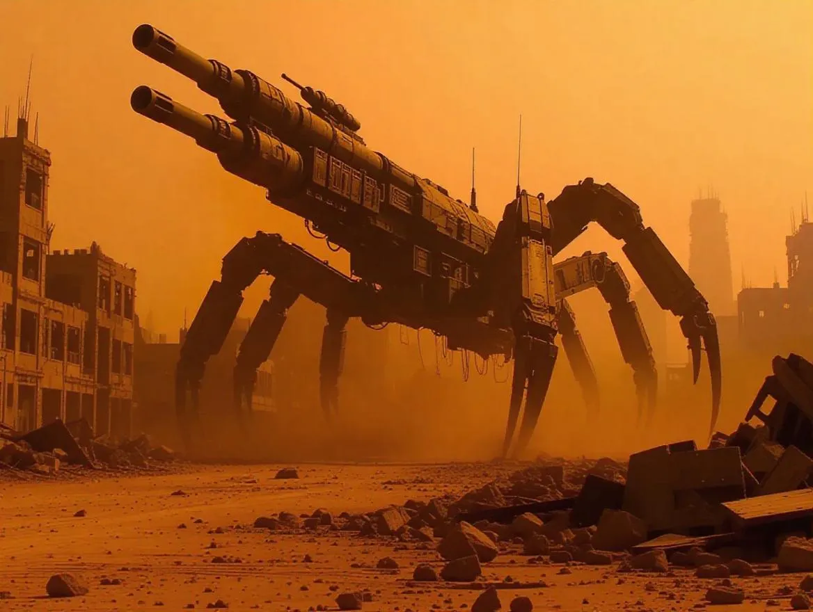 Generate AI art of a giant robotic scorpion armed with heavy guns in a post-apocalyptic world. VivaGo.ai's advanced AI effects bring futuristic warfare to life, crafting detailed mechanical creatures and dystopian environments. Use text prompts, image references, and professional editing tools to create stunning apocalyptic visuals.