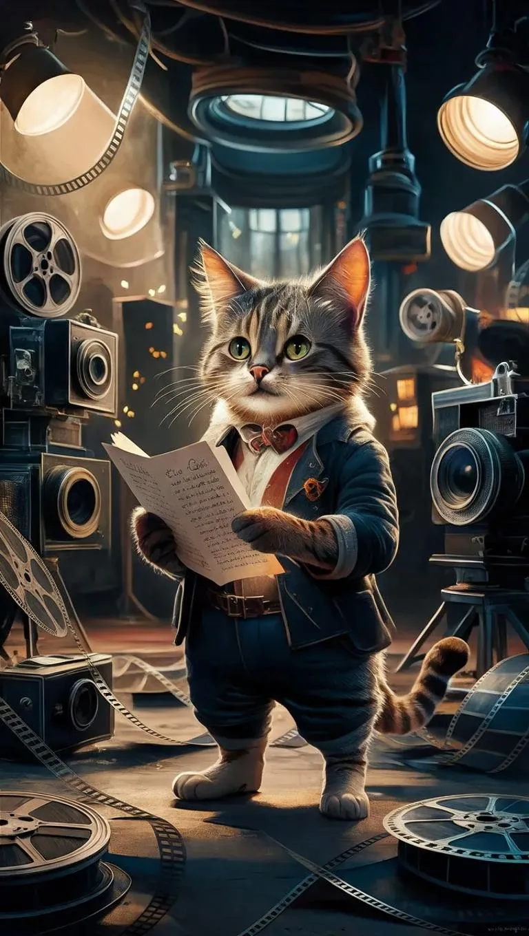 Experience AI-powered cinematic artistry with this visionary cat filmmaker oil painting. Vivago.ai transforms text prompts into stunning 3D-rendered visuals, blending movie set details, film reels, and cinematic effects for professional-grade AI-generated imagery. Elevate creativity with curated tools for lifelike, cinematic AI art.