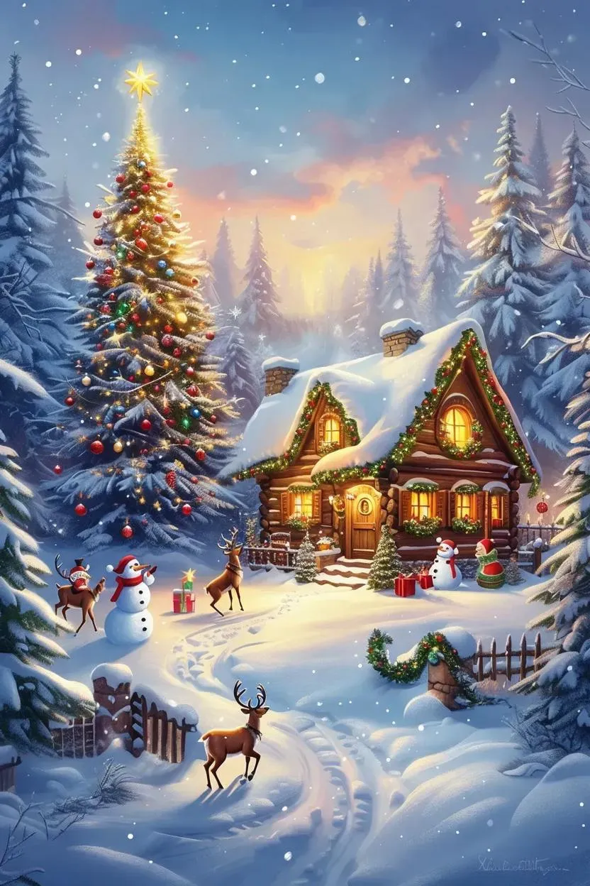 Create a festive Christmas scene with vivago.ai's AI image generator! This whimsical snow-covered village features twinkling lights, Santa descending a chimney, playful reindeer, and cheerful snowmen. Ideal for coloring pages or holiday designs, our customizable AI effects add vibrant details to bring your merry winter wonderland to life. Perfect for cards, crafts, and creative projects.