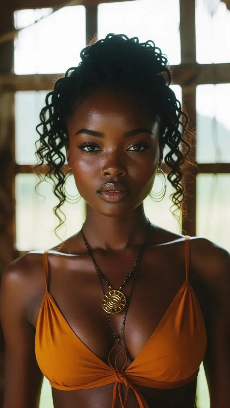 Transform text into cinematic visuals with vivago.ai's AI tools. Generate a dramatic Bantu woman portrait, dynamic 35mm film still with color grading, atmospheric lighting, and epic composition. Professional-grade film grain, vignette, and cinematic effects for stunning, masterful results.
