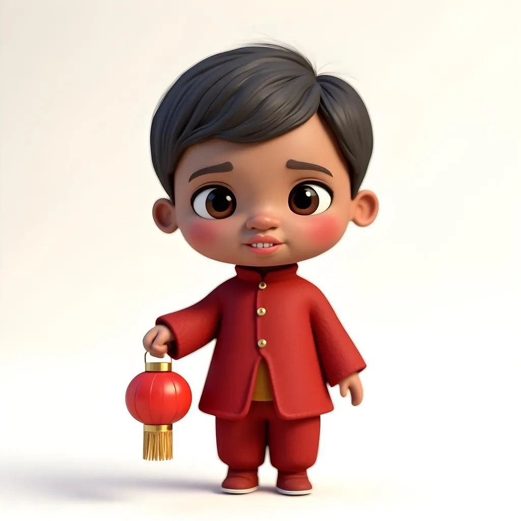 Create a vibrant AI-generated cartoon character in Pixar-style illustration with 3D rendering. Featuring a boy in a bold red outfit holding a festive lantern and gift, set against a clean white background. Ideal for dynamic animations, ads, or storytelling. Elevate visuals with professional-grade C4D effects and vivago.ai's precision.