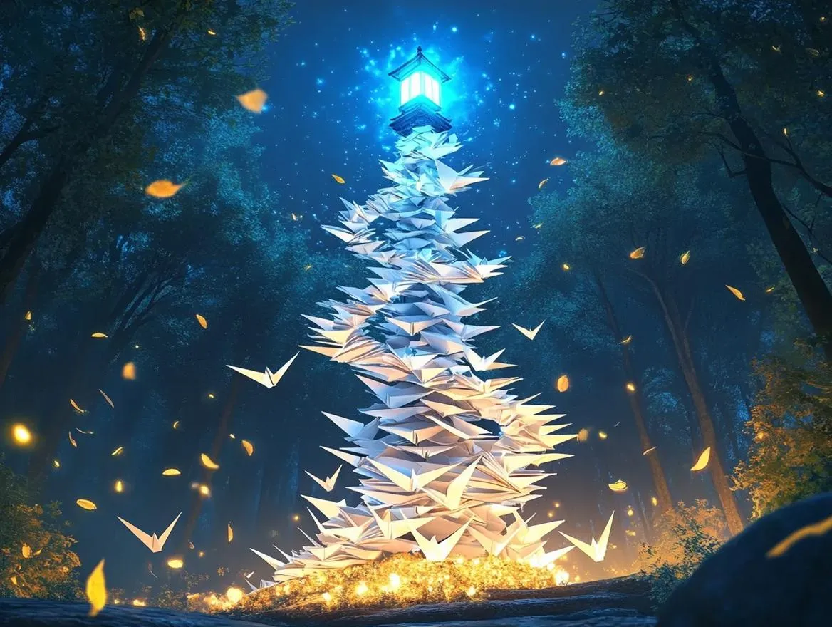 Transform text into surreal anime art with AI. Generate a spiraling tower of folded paper cranes, glowing blue lanterns, and swirling memory leaves in painterly style. Create ethereal fantasy landscapes, surreal architecture, and dreamlike scenes effortlessly using Vivago.ai's AI image tools for mesmerizing digital art. Ideal for anime-inspired visuals and imaginative storytelling.