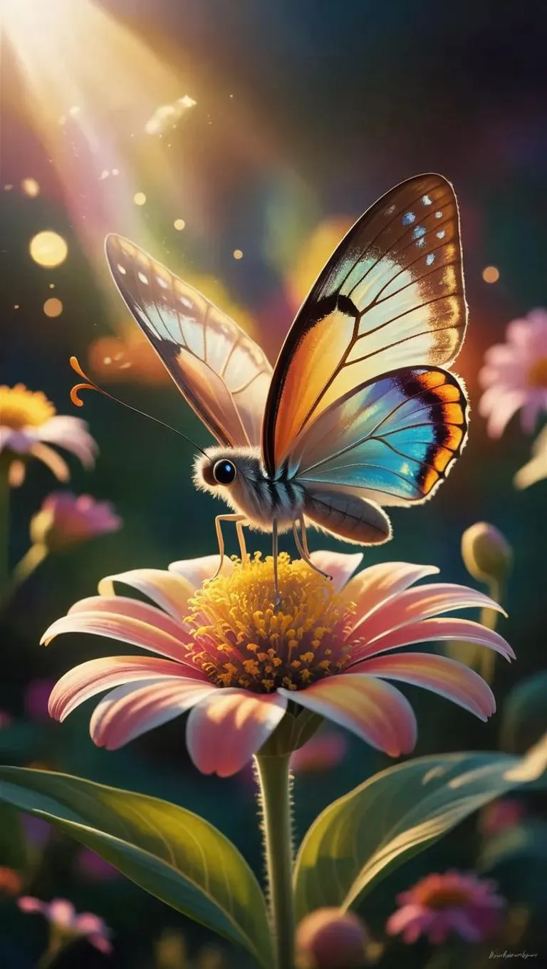 Create vibrant 3D Pixar-style AI animations of Bella the butterfly gently landing on a colorful flower, wings spread. Generate lifelike details, vivid textures, and whimsical charm for enchanting digital art, cartoons, or nature-inspired visuals using AI-powered tools.