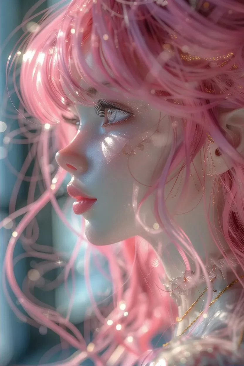 Generate stunning 3D anime girl portraits with vivago.ai. Create close-up profiles featuring pink hair, big eyes, a high nose bridge, fair skin, and long eyelashes. Get AI-generated, modeled anime character artwork instantly. Perfect for anime-style digital art and profile visuals.
