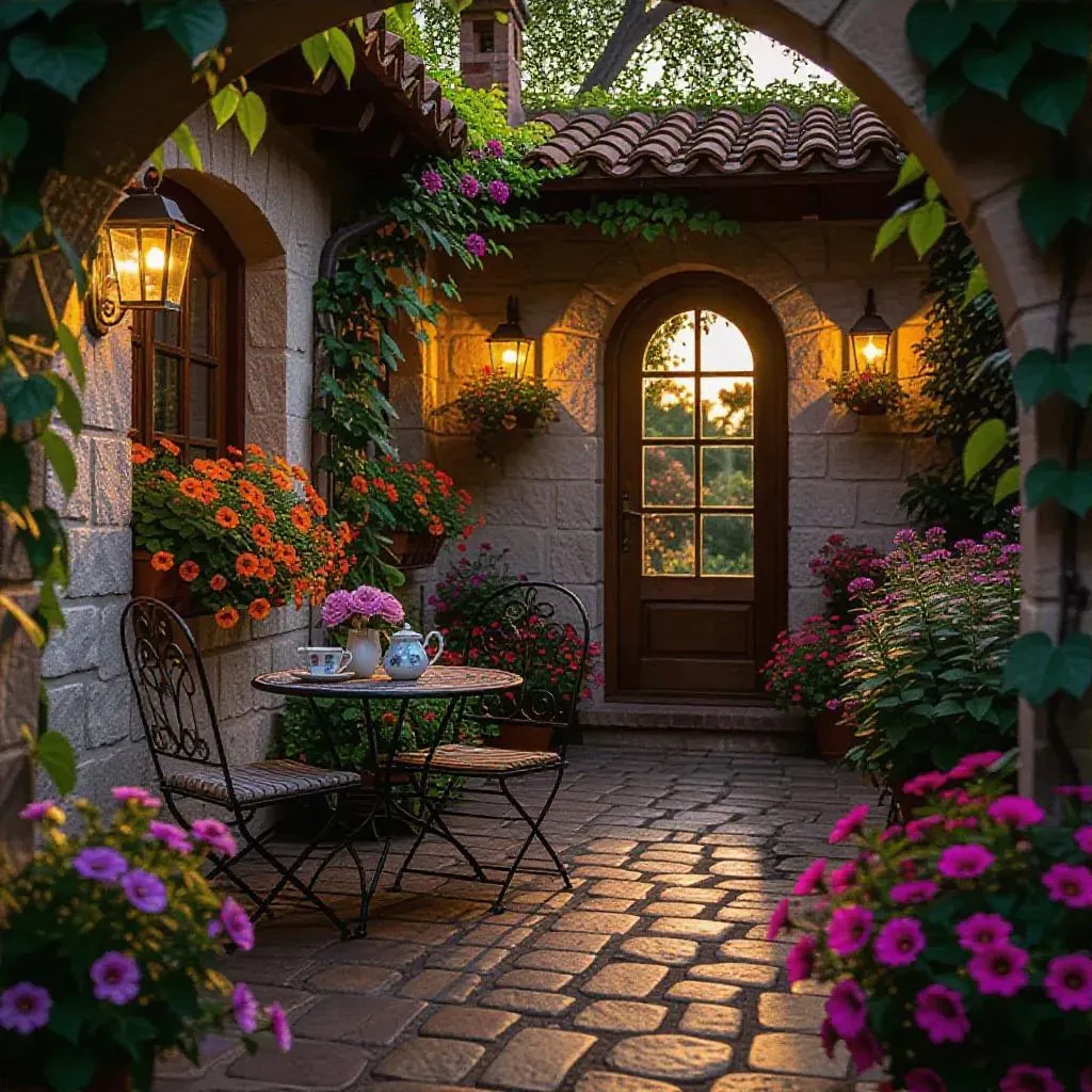 Transform text into AI-generated paintings of serene small courtyard designs with elegant tea table sets. Vivago.ai blends artistic inspiration and AI effects to create visually captivating outdoor spaces, perfect for enhancing your creative projects with professional-grade, custom visuals.