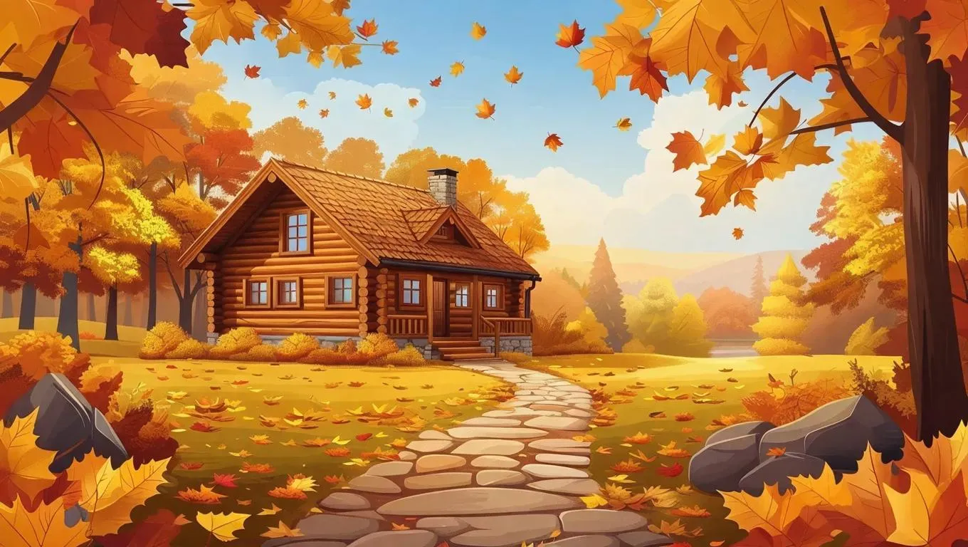Generate a serene autumn landscape AI image with a rustic log cabin, vibrant golden trees, and winding stone path. Customizable 4m² scene or expansive 15m² vector previews. Vivago.ai crafts professional-grade nature visuals using advanced AI tools—perfect for seasonal designs, cozy themes, or outdoor-inspired projects. Create high-resolution, detailed autumn vistas instantly with text-to-image precision.