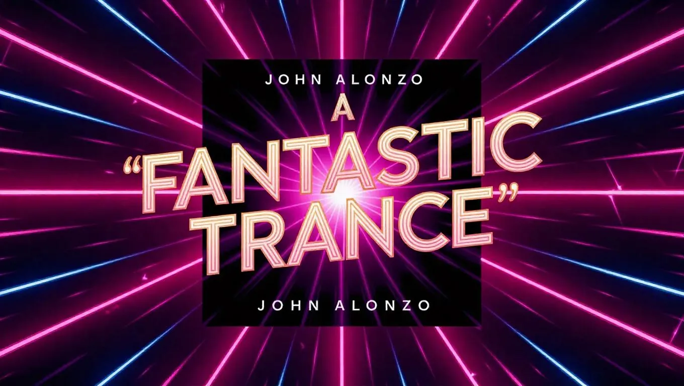 "**A Fantastic Trance**" by **John Alonzo**, displayed in vibrant, neon-lit text on a music album cover, set against a pulsating, cosmic background with swirling colors and glowing synths. The design maximizes engagement, views, virality, and earning potential, capturing the essence of Trance EDM.
