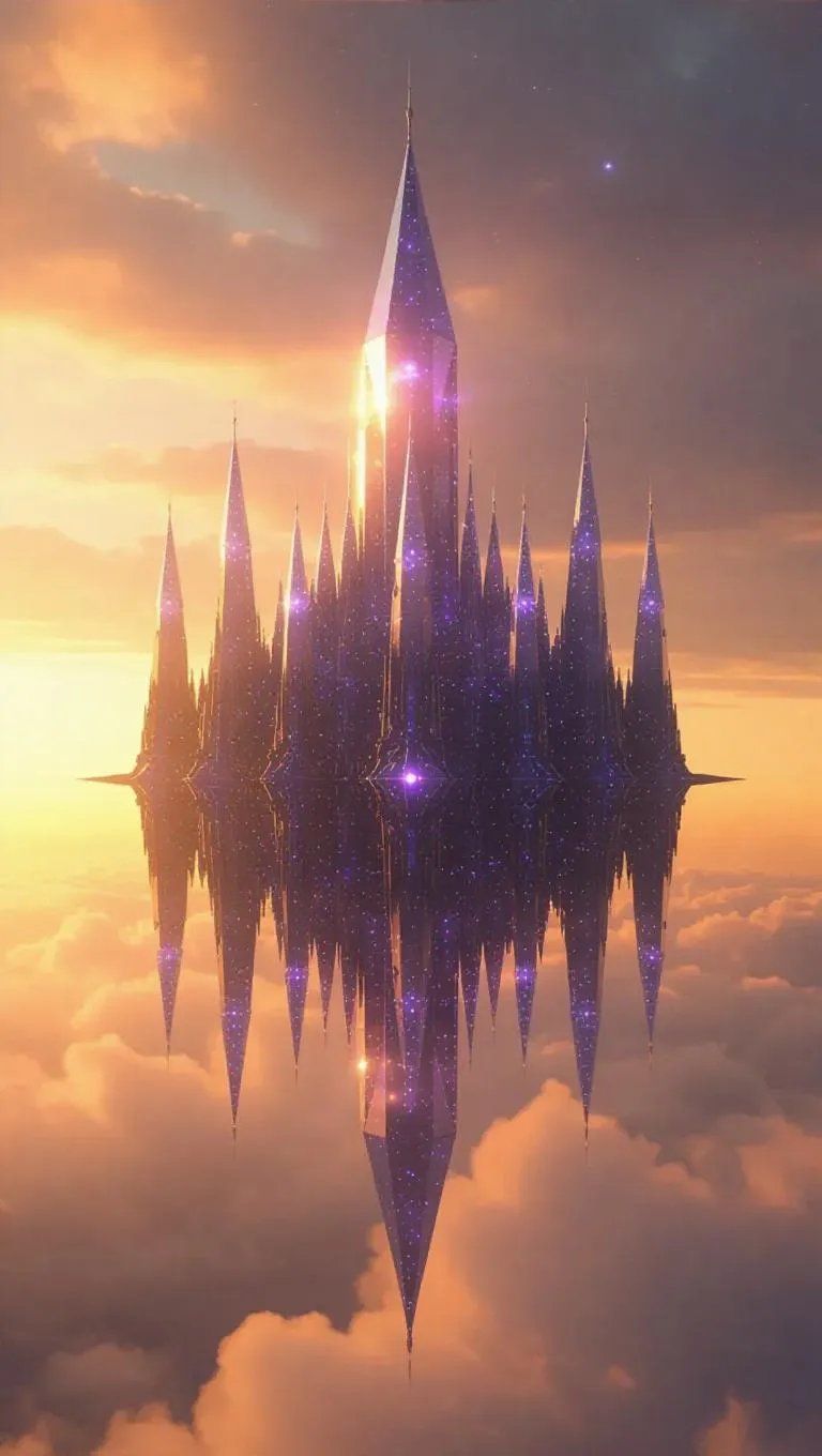 A floating fortress of impossible geometry, where every hallway shifts with the movement of the stars. Rulers are beings of pure light, wearing armor of living crystal that shifts color with their emotions. Their ethereal voices resonate like wind passing through glass towers, casting a mesmerizing glow.