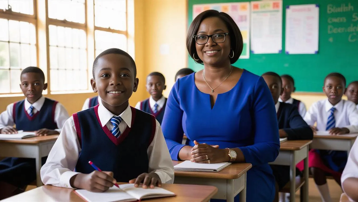 Transform text into vivid classroom visuals with vivago.ai. Generate AI-powered scenes of 11-year-old Tunde, an aspiring doctor, engaging with teacher Mrs. Ayoka in her blue dress and glasses. Perfect for storytelling, educational projects, or creative content with lifelike AI effects and professional editing tools.