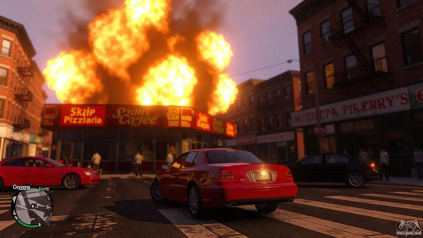 Generate dynamic Grand Theft Auto IV scenes with Vivago.ai. AI-powered 3D renders bring inner city chaos to life, featuring exploding pizzerias. Transform text prompts into professional gaming visuals effortlessly.