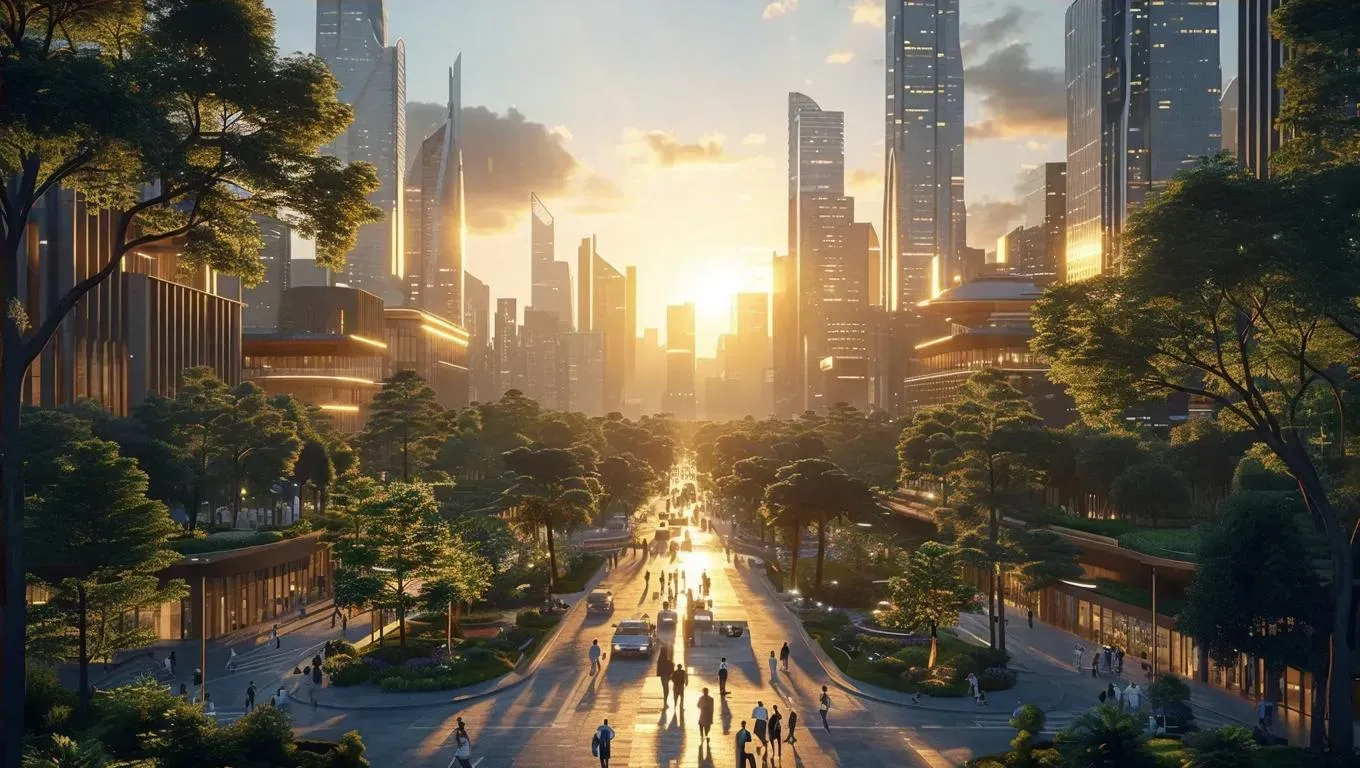 Explore a hyperrealistic aerial cityscape blending futuristic laboratories, towering cathedrals, and lush rainforests. AI transforms text prompts into serene yet vibrant scenes with robots, dunes, and paranormal exploration elements. Discover harmonious modern architecture, azure skies, and bustling energy—crafted by AI for professional-grade visuals in Vivago.ai's creative suite.