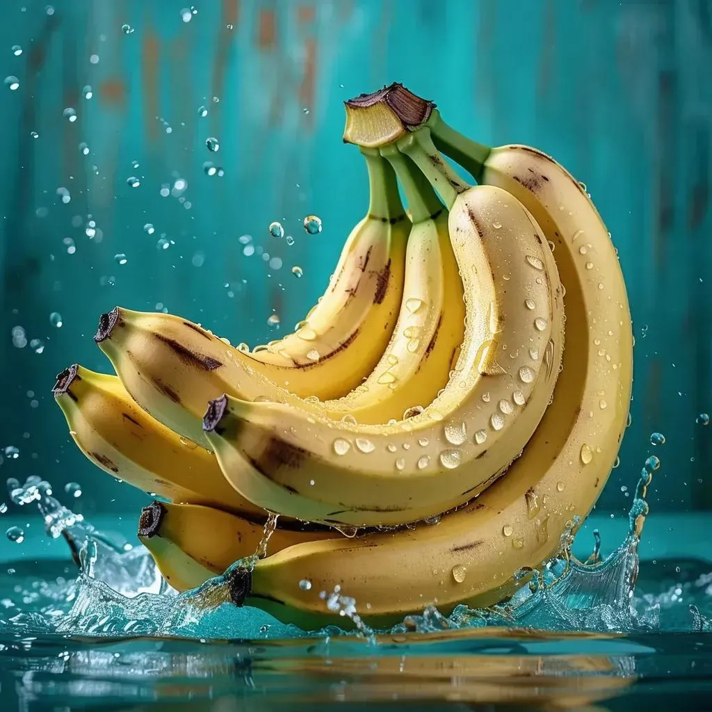 Create vivid AI-generated images of fresh ripe bananas with glistening water droplets against a vibrant teal backdrop. Transform text prompts into high-quality visuals with VivaGo AI’s tools for eye-catching, professional-grade creative content.