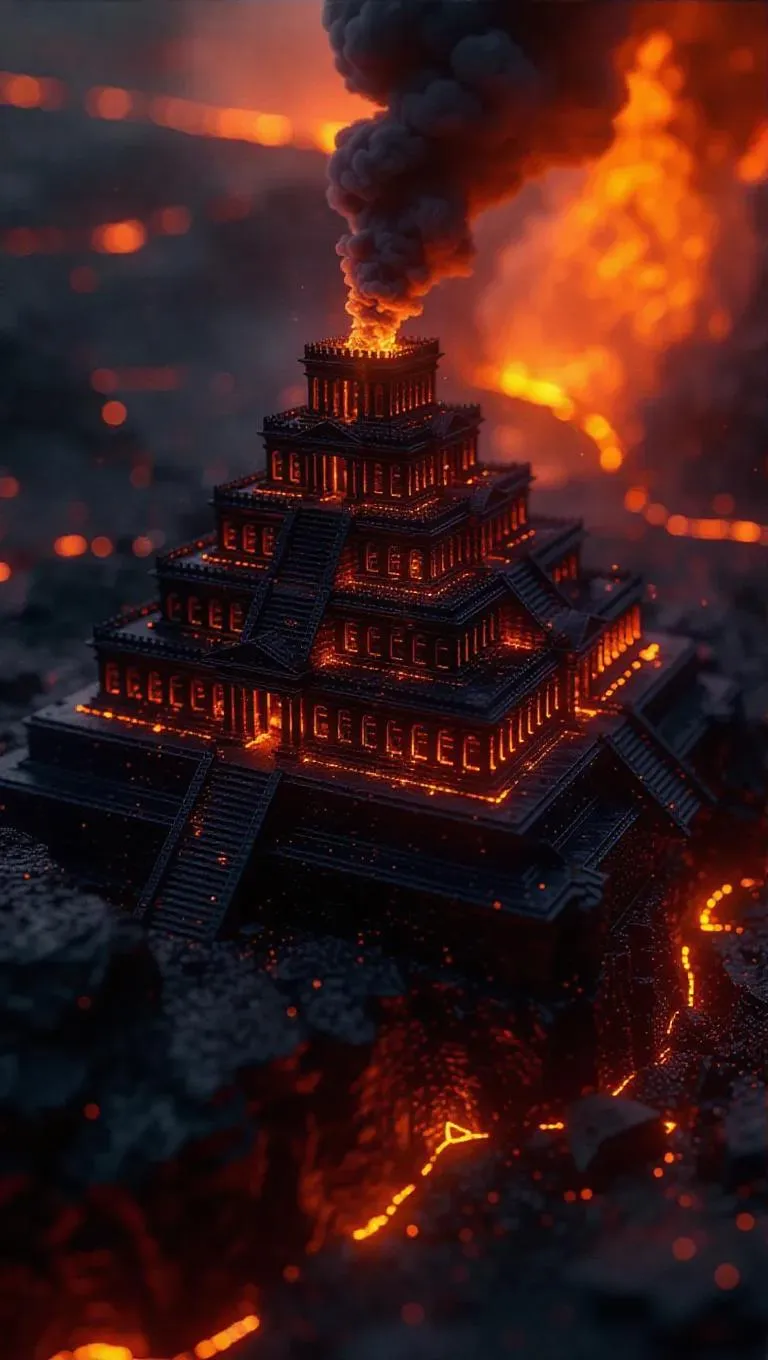 AI archaeologists interpreting Atlantis from volcanic ash imagery, each eruption narrating the city's twilight in blazing fire. Lidar-surveyed wreckage fused with tribal decoration flames.