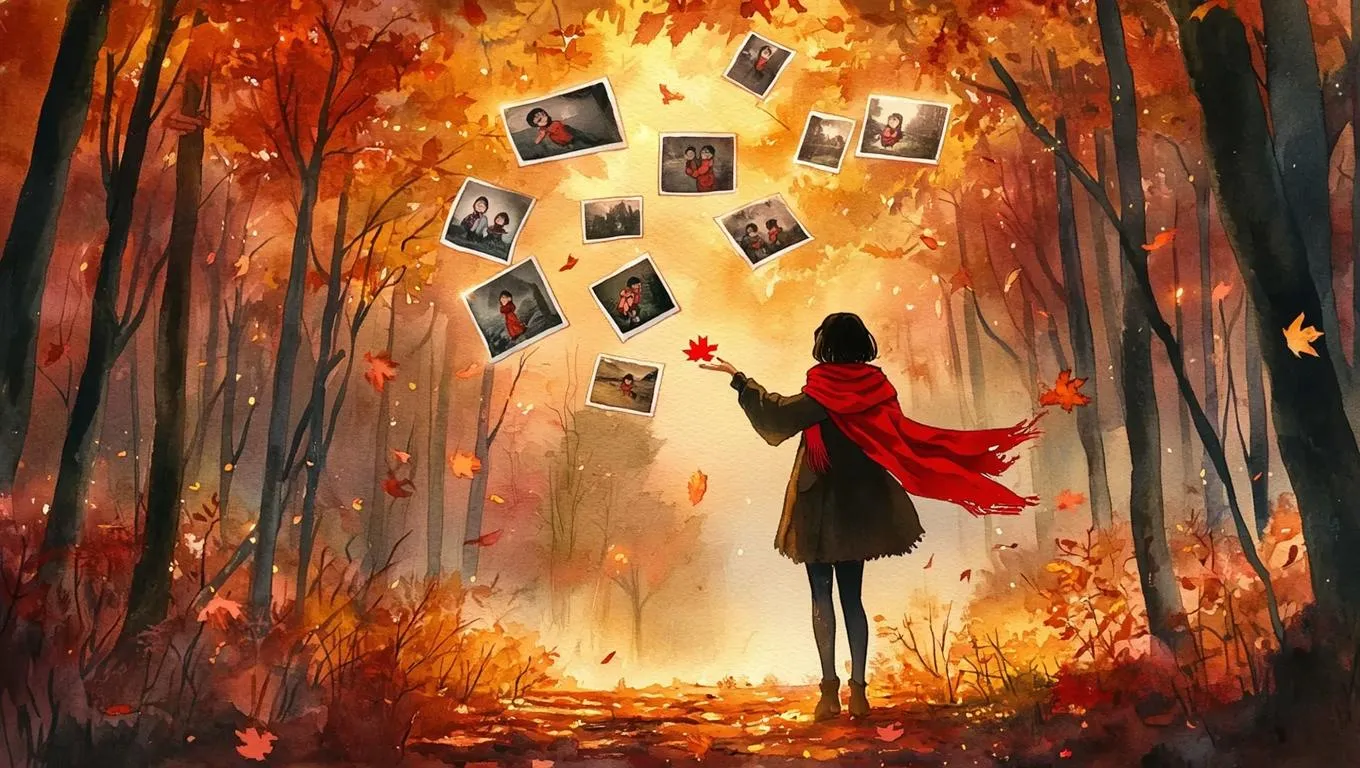 Transform text into captivating AI-generated art with vivid autumn forests, golden-crimson leaves, and magical realism. A red-scarfed traveler explores a whimsical woodland where vintage photos flutter like birds and glowing leaves echo laughter. Watercolor anime style meets warm twilight hues—unleash your creativity with AI-powered visual storytelling tools.