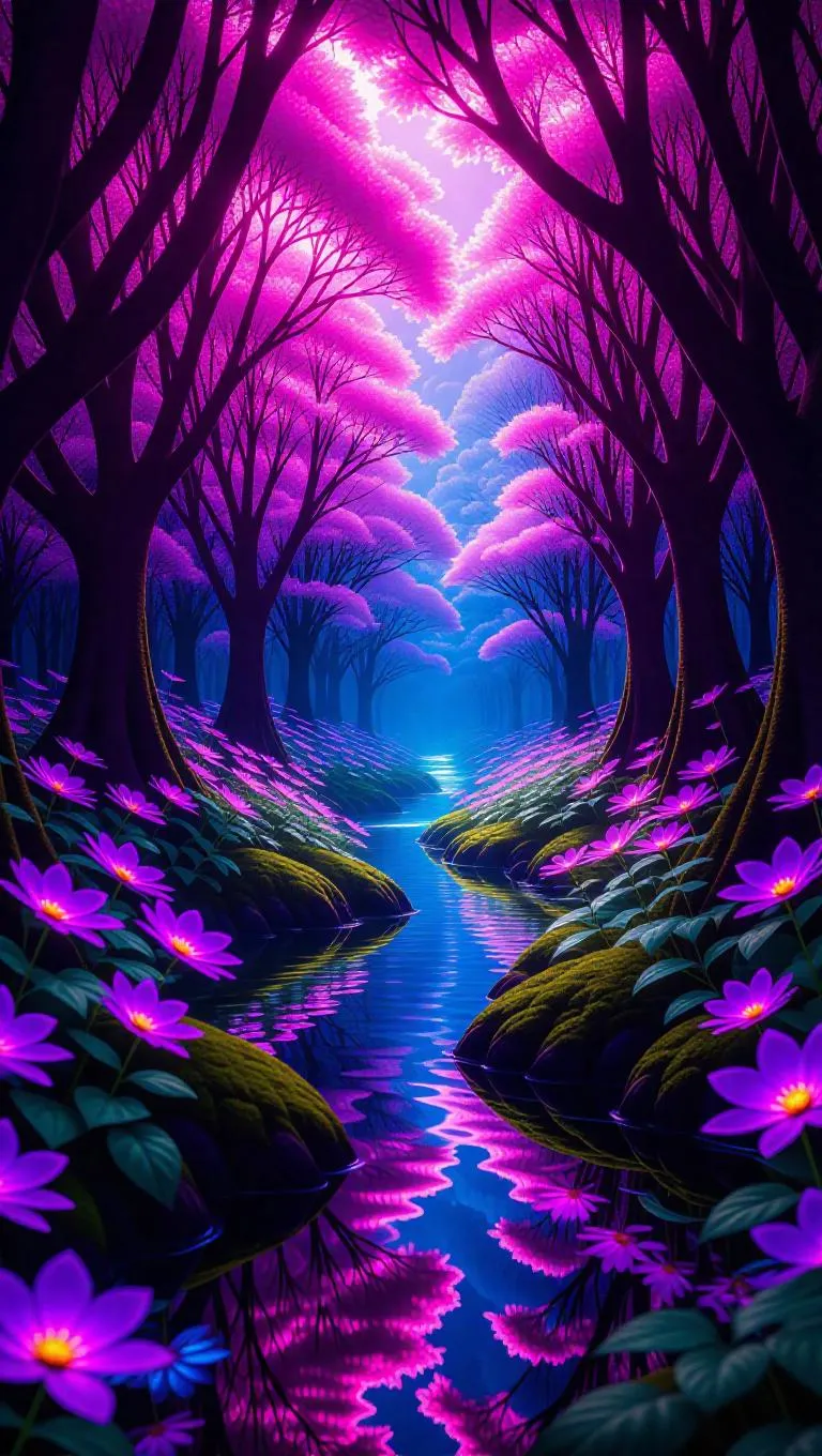 Generate mesmerizing AI art of a vibrant crystal forest with towering rainbow-refracting trees, gemstone hummingbirds, and bioluminescent singing vines. Transform text prompts into surreal fantasy landscapes using Vivago.ai's AI image tools for luminous, ethereal digital creations blending organic beauty with magical ecosystems. Perfect for surrealist art, concept design, and imaginative digital content.