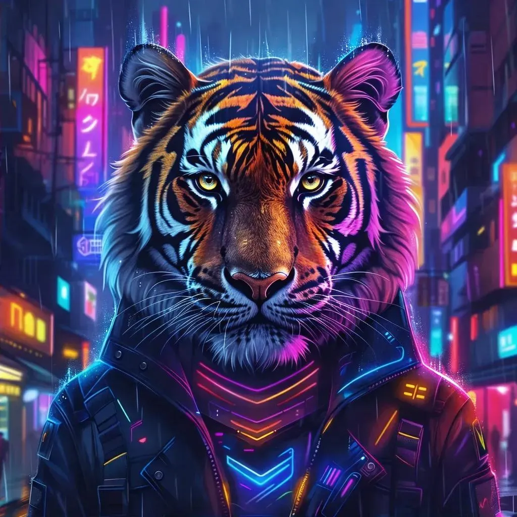 Create a dynamic full-body cyberpunk tiger with neon accents, glowing circuitry, and biomechanical elements using AI. Ideal for futuristic art, gaming assets, and digital storytelling. vivago.ai turns text prompts into pro-level AI visuals with cyberpunk effects, sharp details, and customizable editing tools.