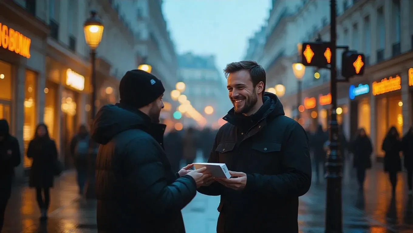 Capture the magic of a first sale with AI-generated visuals. VivaGo.ai transforms prompts into vivid scenes — a hopeful entrepreneur handing his debut product to a smiling customer, set against a detailed urban backdrop with soft streetlight glows. Create emotionally rich, professional-grade moments effortlessly.
