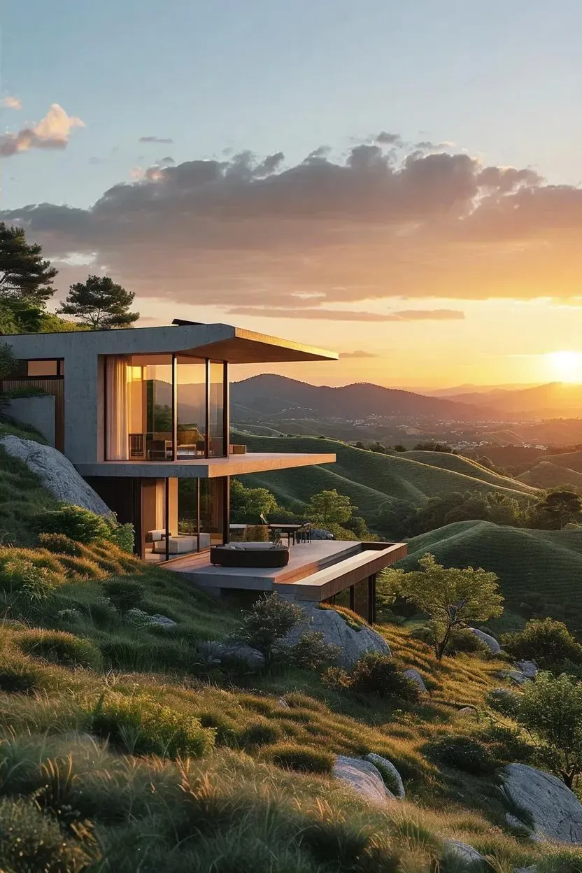 Generate stunning modern house visuals with hills backdrop using AI. Transform text prompts into realistic architectural imagery, blending contemporary design with natural beauty. Perfect for real estate, design projects. Try VivaGo's text-to-image AI tools for professional-grade results.
