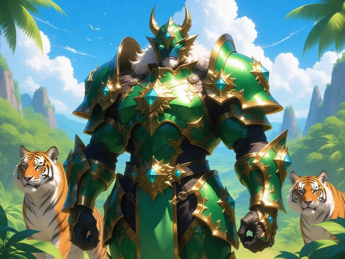 Create a striking AI-generated Beast Master Admiral portrait with vivago.ai's creative tools. Explore vibrant bright-green, white, orange, and blue color palettes for dynamic fantasy character designs. Perfect for concept art, digital illustrations, and AI-powered visual storytelling with professional-grade effects.