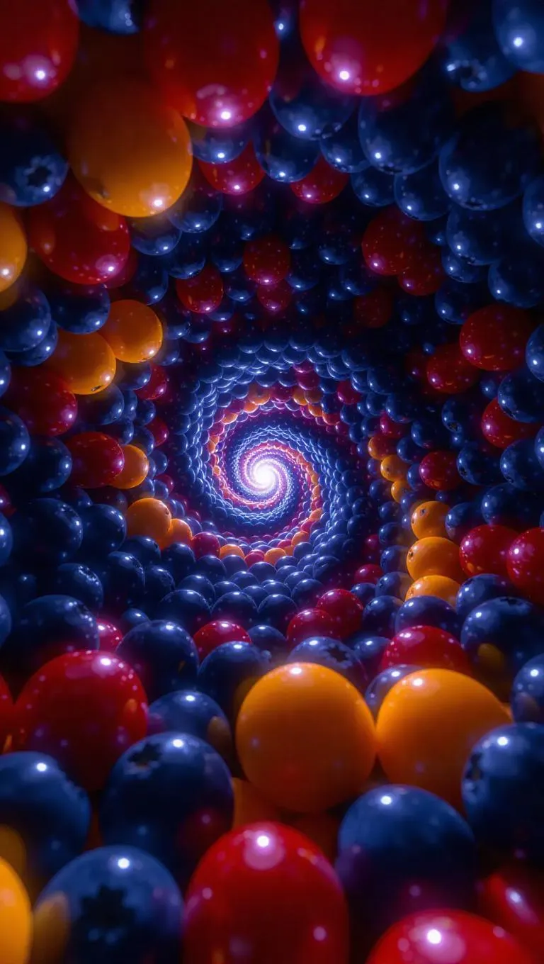 In deep space, a galaxy spirals in clusters of vibrant fruit. Stars glow as luminous blueberries, black holes are pits from colossal cherries, and nebulae swirl as ethereal mango mist. Cosmic rays shimmer with citrus flavors. Space suits are crafted from resilient peel-fiber, and ships harvest cosmic juice from exploding pomegranates.