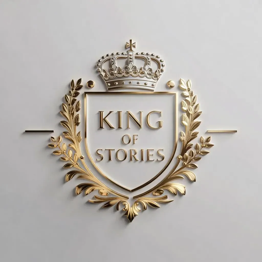 Create a luxurious logo for Instagram storytelling pages featuring a royal mark, "King of Stories," in opulent gold tones. Sleek, minimalist design exudes exclusivity and regal elegance for premium brand identity.