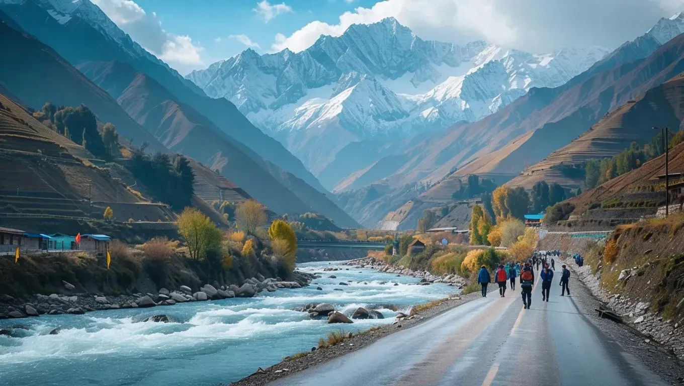 Generate stunning AI visuals of Syachiene Glacier mountains with a flowing river and travelers on a winding road. Vivago.ai transforms text prompts into vivid landscapes, offering advanced AI effects for professional-grade nature scenes. Elevate your creative projects with lifelike alpine adventures and dynamic environmental storytelling.