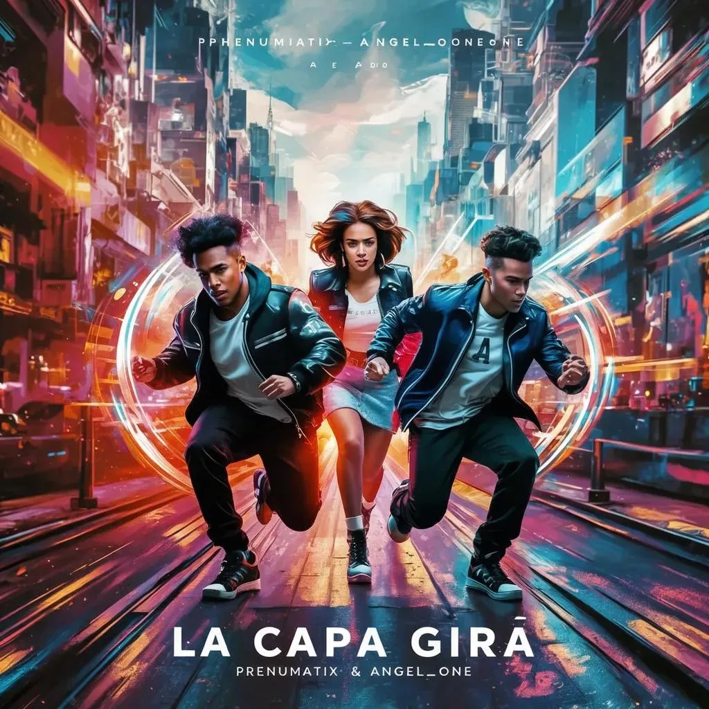 Create a stunning 3000x3000 AI-generated artwork for Pneumatix & Angel_One's EP "La Capa Gira" inspired by the cult film. Transform cinematic visuals into dynamic music artwork with AI effects—ideal for album covers, posters, or digital releases. High-resolution, surreal designs tailored for electronic music branding. Perfect for music releases, merch, or social media promotion.