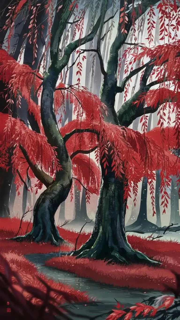 Vivid Japanese Ukiyo-e AI art brings this autumn willow forest to life—cascading crimson leaves, wind-swept branches, and tranquil melancholy reimagined in traditional woodblock style. Explore AI-generated vibrant autumn scenery with vivago.ai’s text-to-visual tool, blending nature’s resilience and ethereal beauty through bold lines, rich hues, and timeless artistic flair. Create serene, melancholic landscapes inspired by Edo-era aesthetics effortlessly.