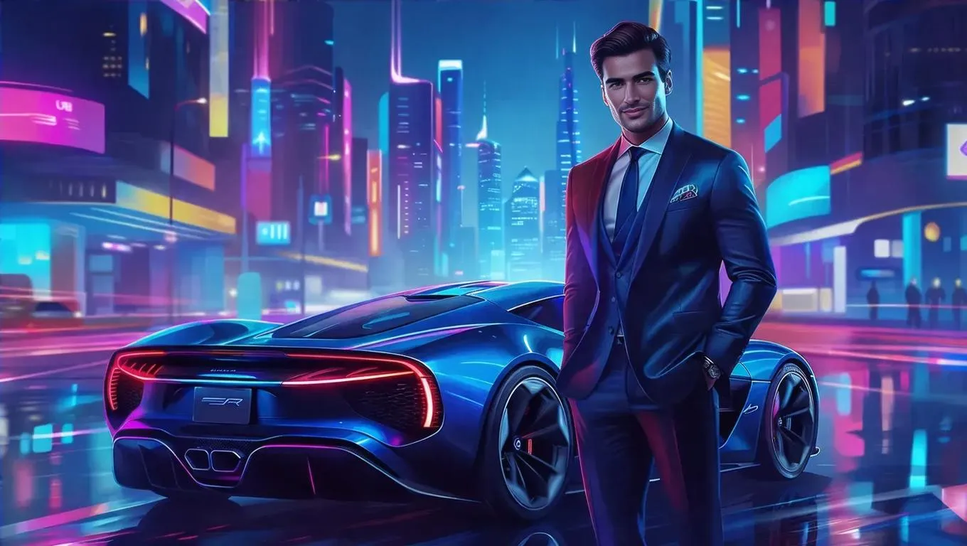 Create AI-generated visuals of a dynamic guy with a luxury supercar using vivago.ai. Transform text prompts into vibrant, high-speed imagery with curated AI effects. Perfect for automotive enthusiasts seeking professional-grade supercar art, video content, and cutting-edge editing tools for sleek, futuristic results.