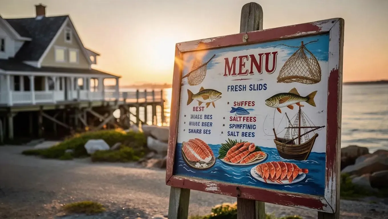 Transform your café or restaurant with a vintage menu board featuring nautical fishing and sailing motifs. Our AI tools craft nostalgic maritime designs, blending retro typography with anchor, rope, and wave elements for a charming seaside ambiance that evokes classic coastal eateries and maritime heritage.