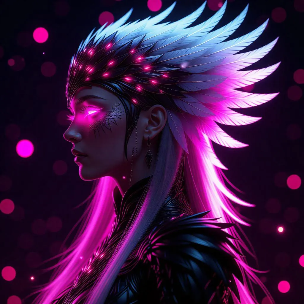 Transform text into stunning AI-generated art with Aether's surreal character design—feather hair in dark-gray, silver, dark-red, white, and glowing-pink hues. Elevate your creative projects with vivago.ai's advanced tools for vibrant color palettes and ethereal fantasy aesthetics.